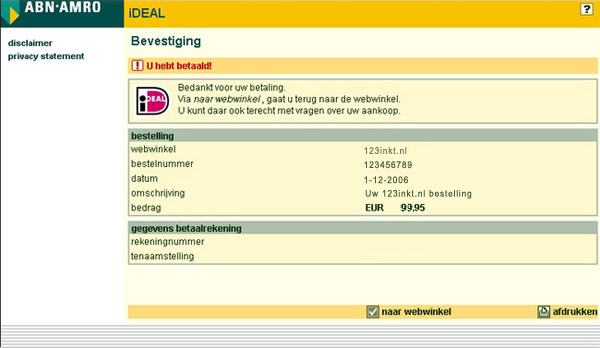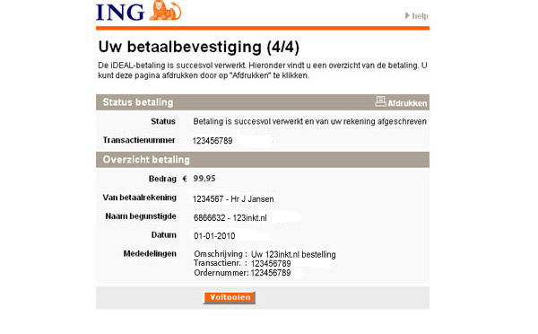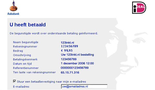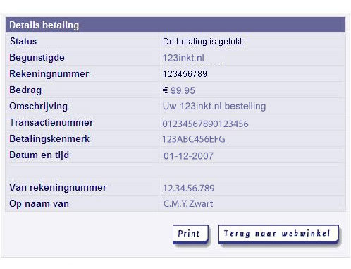 Het bedrag wordt direct van uw betaalrekening afgeschreven en uw bestelling wordt door ons verwerkt.