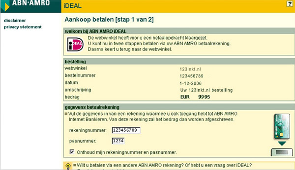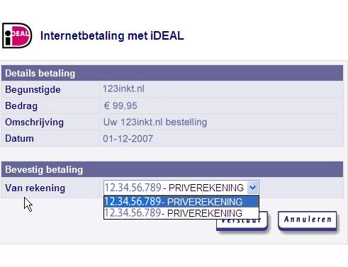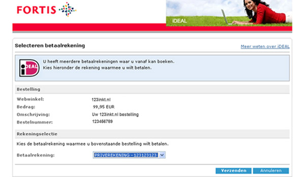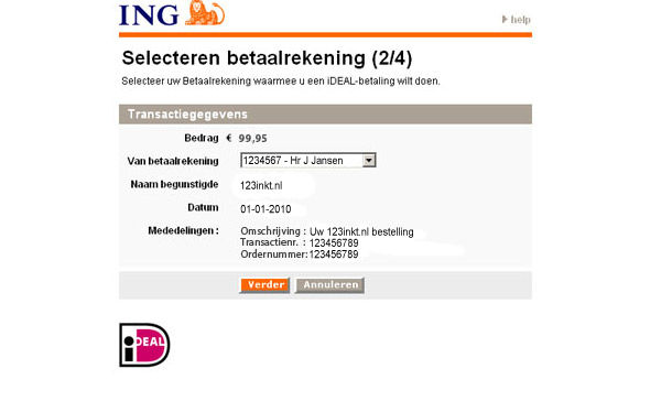 Klik op de naam van uw bank voor een iDeal voorbeeld betaling