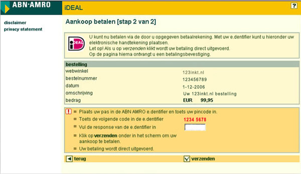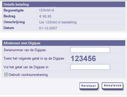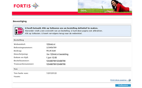Vervolgens wordt u doorgeleid naar uw eigen bank waar de betaalopdracht voor u klaar staat. U wordt door uw bank gevraagd een aantal gegevens in te vullen en u autoriseert de betaling.